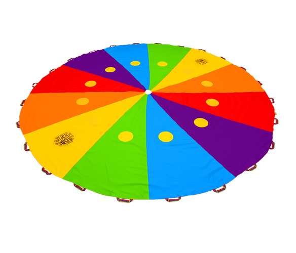- Chusta Edukacyjna 3m to klasyczna chusta animacyjna, jednak dodatkowo na każdym klinie znajduje się 1 duży rzep w kształcie koła, dając możliwość zabaw z zestawami edukacyjnymi.