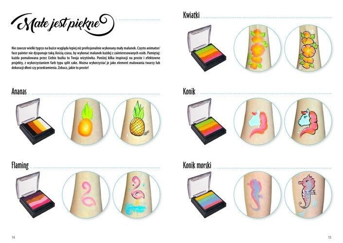 Dzięki zrozumiałym instrukcjom oraz inspiracjom zawartym w tej książce z pewnością rozwiniesz swój warsztat face paintera, zyskasz uznanie i zachwyt nad rezultatami swojej pracy.