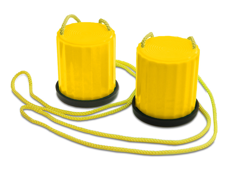 Regulowane sznurko-uchwyty sprawiają, że szczudła można dostosować do wzrostu dziecka.