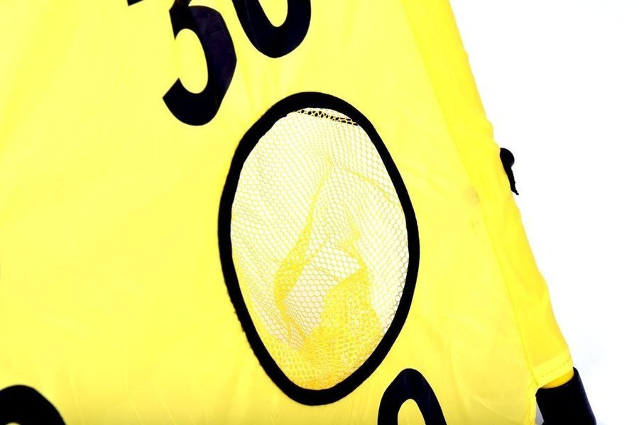 Tkanina z poliestru z kieszeniami z siatki w które należy trafiać dołączonymi do zestawu woreczkami.
