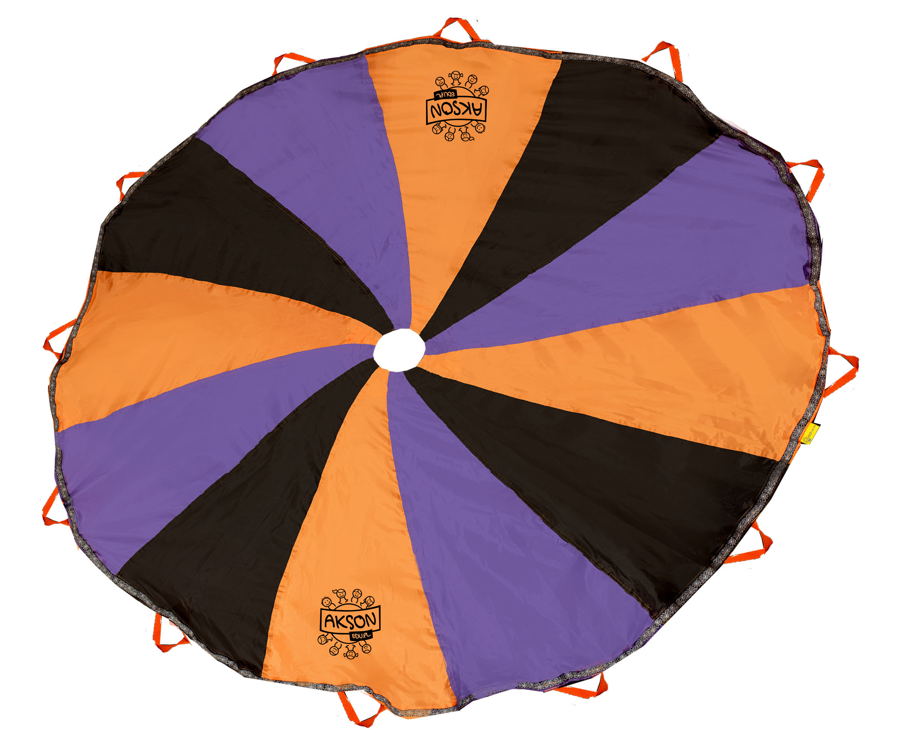 Spadochron animacyjny Akson to płachta animacyjna o wymiarach 1,75 m średnicy w trzech kolorach (czarny-pomarańczowy- purpurowy). Wykonany jest z materiału o mniejszej wytrzymałości i większej przezroczystości niż profesjonalna chusta animacyjna Akson. Materiał, z którego wykonane są spadochrony animacyjne jest lżejszy i błyszczący w świetle.