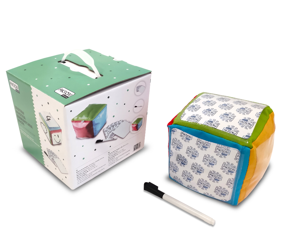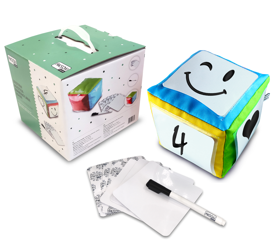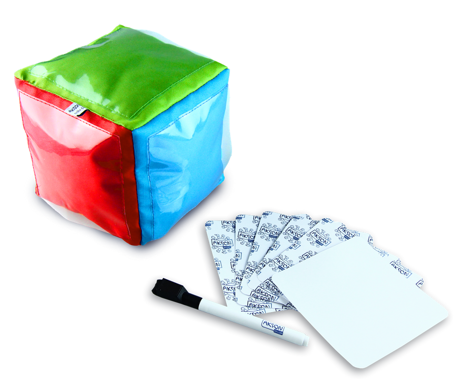 Zestaw Kostka edukacyjna Akson to doskonałe narzędzie do gier zespołowych, pracy w grupach oraz zajęć integracyjnych. Przeźroczyste kieszonki dają nowe i nieograniczone możliwości w zabawie, kostka może zmieniać się w zależności od potrzeby. Dzięki kartom i pisakowi suchościeralnym możesz wciąż zmieniać jej oblicze. Bardzo dobrze sprawdza się w placówkach dydaktycznych umożliwiając czerpanie radości płynącej z ruchu i przebywania w grupie. Każda ze ścian kostki posiada inny kolor. Wypełniona pluszem w środku sprawia że jest niezwykle lekka i miękka w dotyku dzięki czemu chcę się ją podrzucać cały czas.