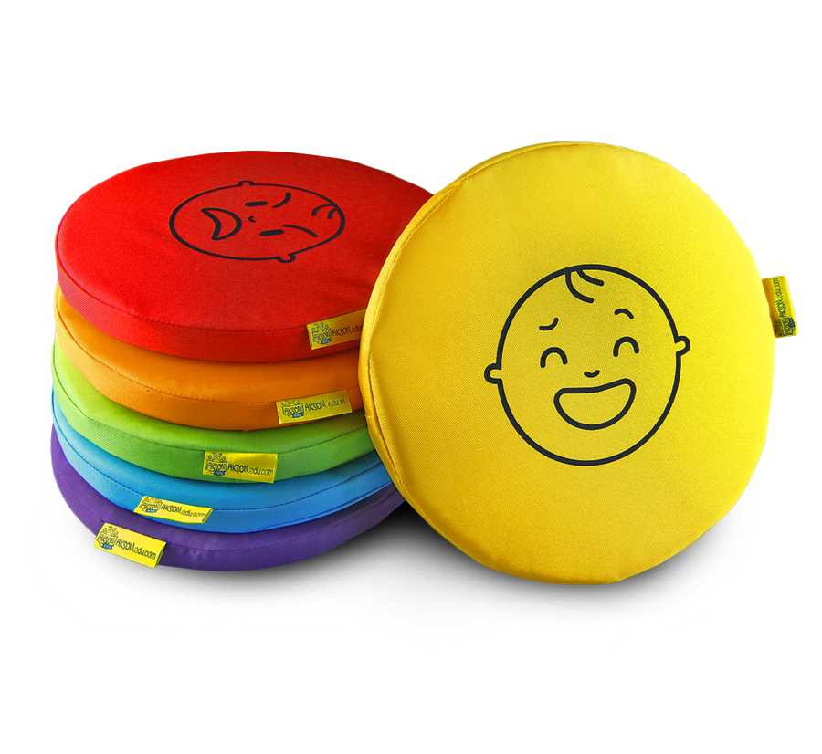 Poduszki zestaw Emocje 6 szt. to ważny element wyposażenia każdego animatora, przedszkola i szkoły. Poduszki mają szerokie zastosowanie w pracy z grupą. Idealnie sprawdzą się we wszelkiego rodzaju zajęciach edukacyjnych i integracyjnych. To doskonałe narzędzie do gier zespołowych w pomieszczeniach jak i w plenerze, umożliwia czerpanie radości płynącej z ruchu i przebywania w grupie. Poduszki wypełnione są wkładem z gąbki, co sprawia że są wygodne a zarazem lekkie i bezpieczne, dzięki czemu mogą nawet spełnić rolę dysku do rzucania!