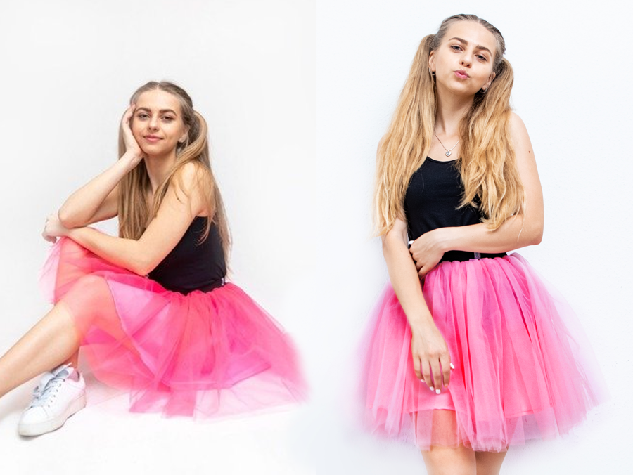 Spódnica wykonana jest z miękkiego tiulu w żywym kolorze, całość podszyta jest podszewką.