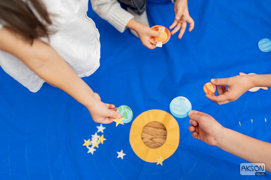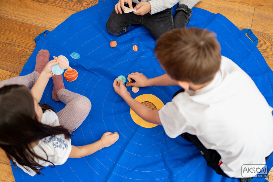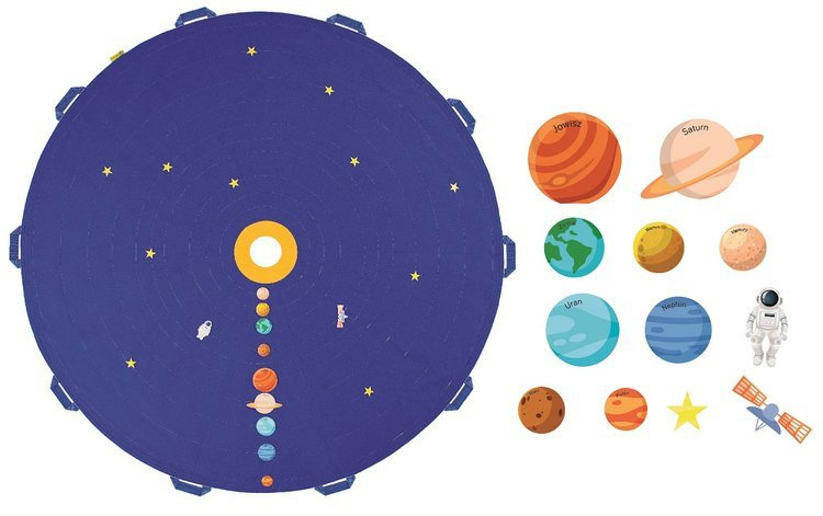 Zestaw Chusta edukacyjna UKŁAD SŁONECZNY Akson duże koła + 21 dodatków edukacyjnych