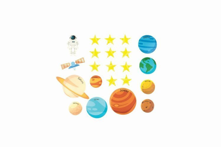 dodatki edukacyjne na rzep: gwiazdy x 10, planety x 9, astronauta x 1, satelita x 1,