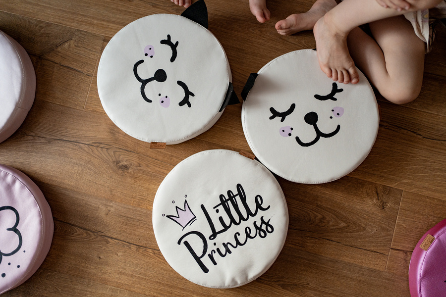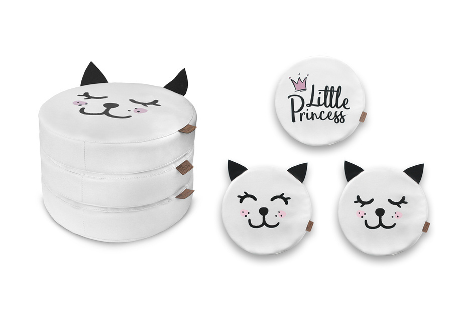 - Dzięki swojej strukturze są bardzo łatwe do dezynfekcji. Poduszki w kolorze białym, z nadrukiem z uroczym kotkiem.