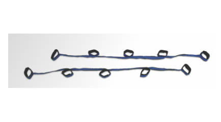 Produkt wykonany z mocnej taśmy poliestrowej, do której dołączone są paski na stopy zapinane na rzepy.