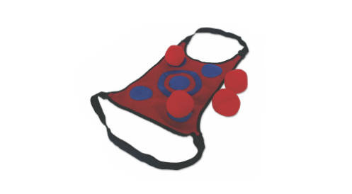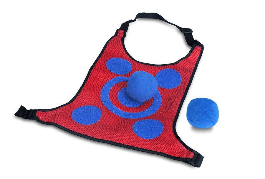 - Uniwersalna kamizelka tarcza dla dzieci i dorosłych z rzepami. Idealny produkt dla animatorów. W zestawie znajduje się: 1 kamizelka, 2 miękkie piłeczki. Rozmiar uniwersalny.