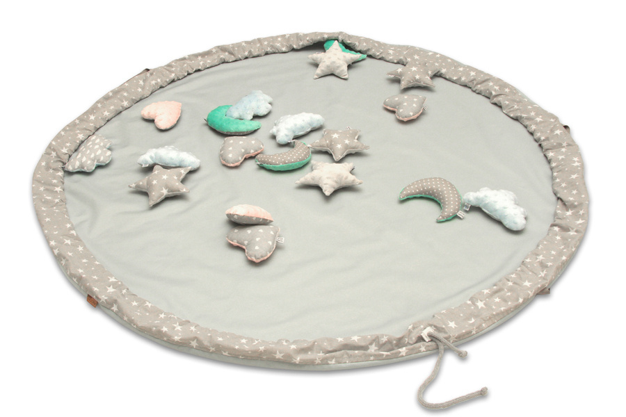 maty do zabawy - po rozłożeniu mamy do dyspozycji okrągłą matę do : zabawy, siedzenia, leżenia, rozmyślania o niebieskich migdałach.