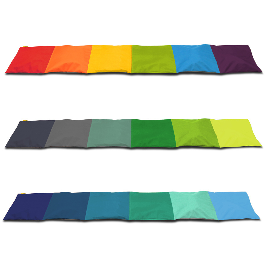 • Chodnik dostępny w trzech opcjach kolorystycznych: odcienie niebieskiego, odcienie zieleni, tęczowy. Kieszenie zasuwane na zamek. Wymiary chodnika: 35 x 210 cm