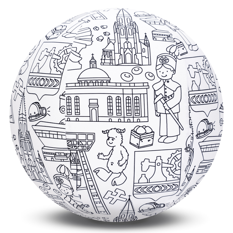 Rozbudź kreatywność i zabierz się za kolorowanie piłki, która przeniesie Cię w sam środek industrialnego serca Śląska! Nasza piłka przedstawia charakterystyczne dla Katowic zabytki i symbole, takie jak Spodek, Pomnik Powstańców Śląskich, wieże szybowe kopalni, czy modernistyczną architekturę miasta.