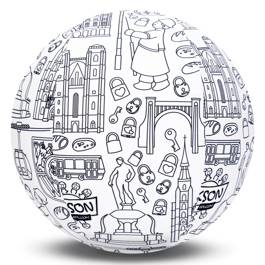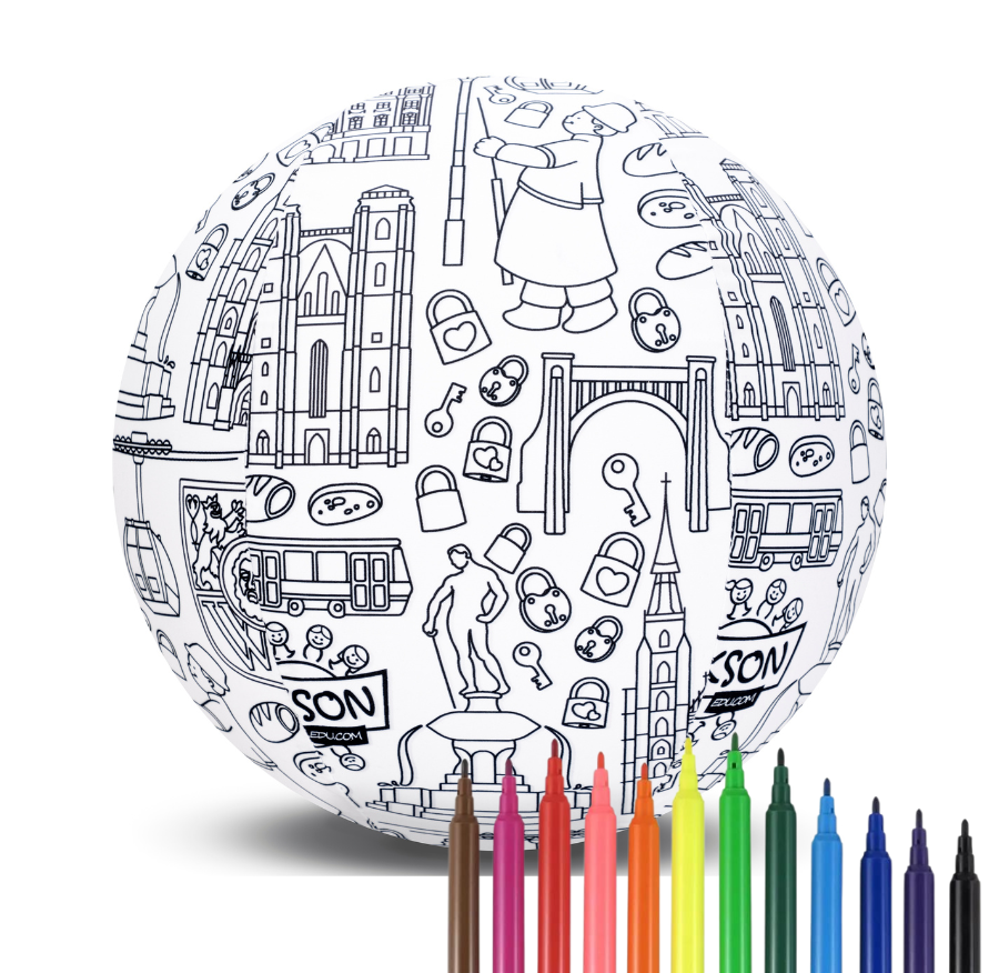 Wejdź w kolorowy świat Wrocławia i odkryj jego uroki dzięki naszej wyjątkowej piłce do kolorowania! Piłka ozdobiona jest rysunkami charakterystycznych wrocławskich zabytków i atrakcji, takich jak Rynek z Ratuszem, Ostrów Tumski, Hala Stulecia czy słynne wrocławskie krasnale.