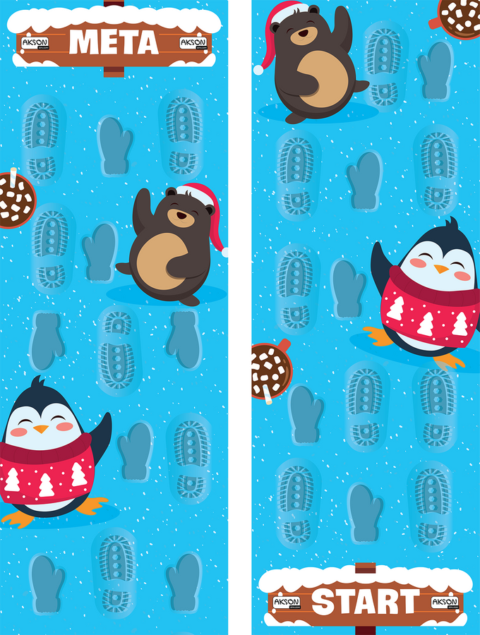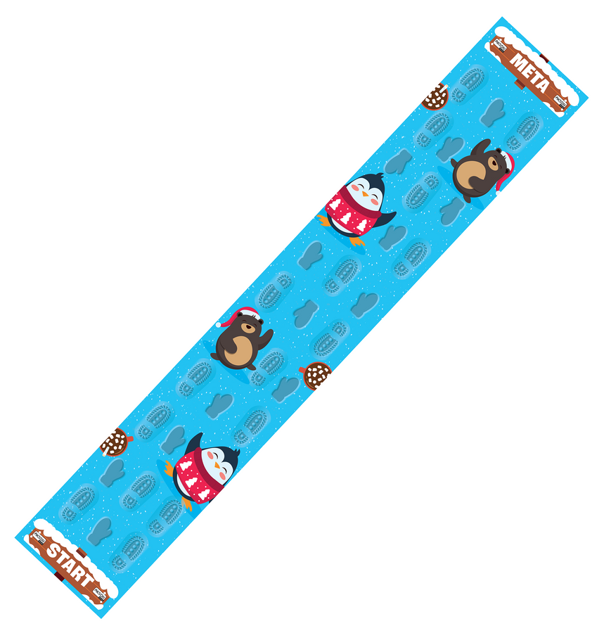 Celem gry jest odtworzenie skoków według układu zimowych śladów stópek i rączek, który znajduje się na planszy. Sprawdźcie kto zrobi to najszybciej i bezbłędnie! Mając dwie maty możecie również organizować wyścigi grupowe.