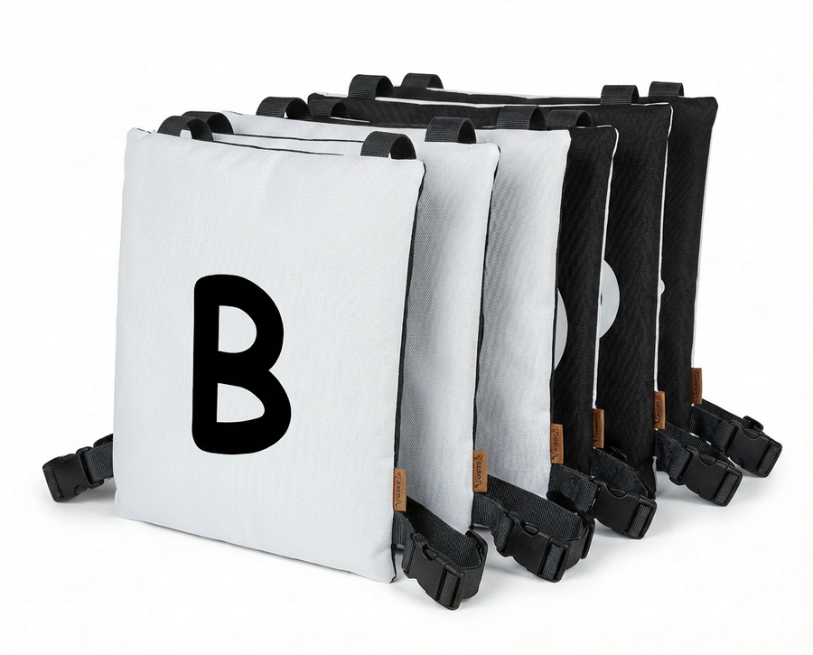 Zestaw zawiera 6 dwustronnych poduszek. Każda ze stron ( biała i czarna) daje mnóstwo możliwości zabawy.