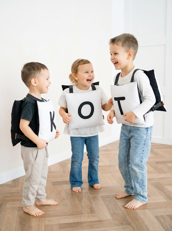 - W zestawie większym niż 4 poduszki nie wszystkie poduszki muszą zostać użyte przy tworzeniu wyrazu.