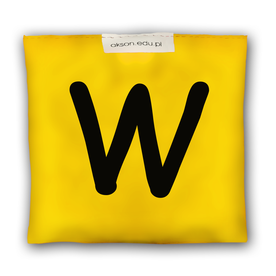 Woreczek gimnastyczny z nadrukiem z literką W, szkolny Akson to wyjątkowa pomoc w czasie zabaw animacyjnych, dydaktycznych i zajęć korekcyjno-ruchowych.